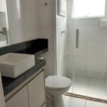 Banheiro social com blindex e gabinete de pia,