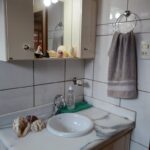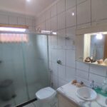 Banheiro social c/ box blindex com armário e gabinete,