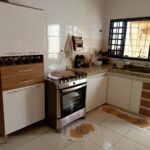 Cozinha com armário e gabinete de pia,