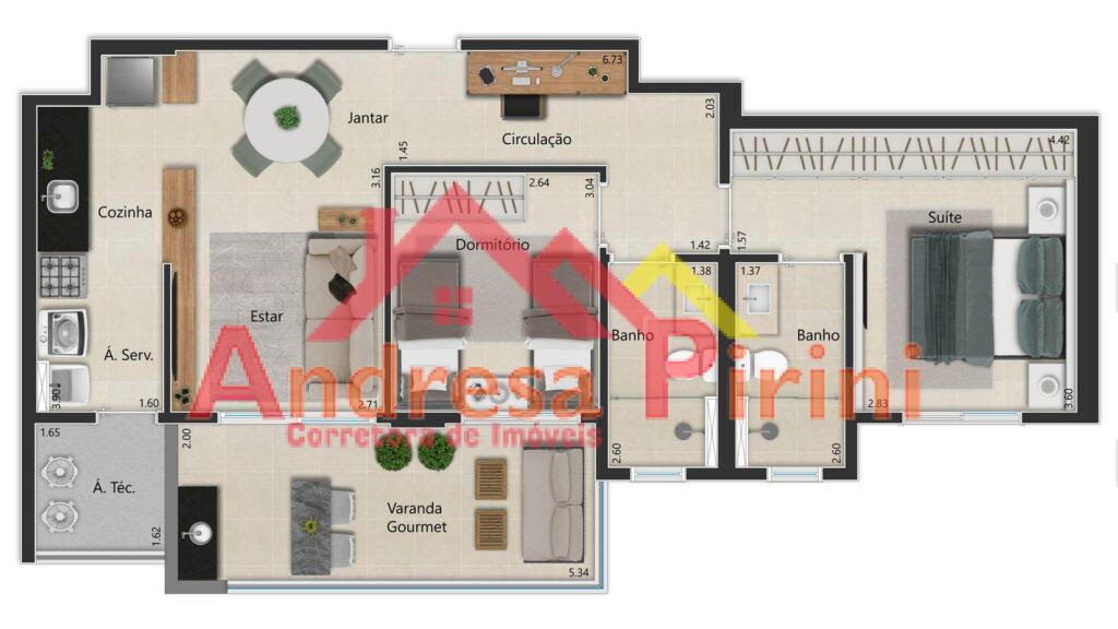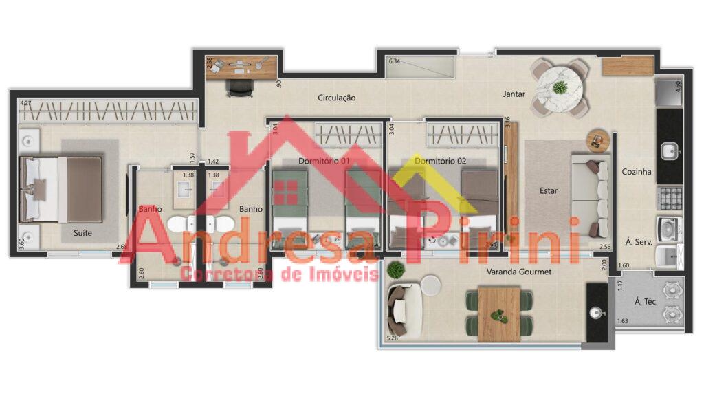 This style property is located in is currently and has been listed on Andresa Pirini. This property is listed at R$ 669.312,55. It has 3 Quartos bedrooms, 2 Banheiros bathrooms, and is 91 m². The property was built in year.