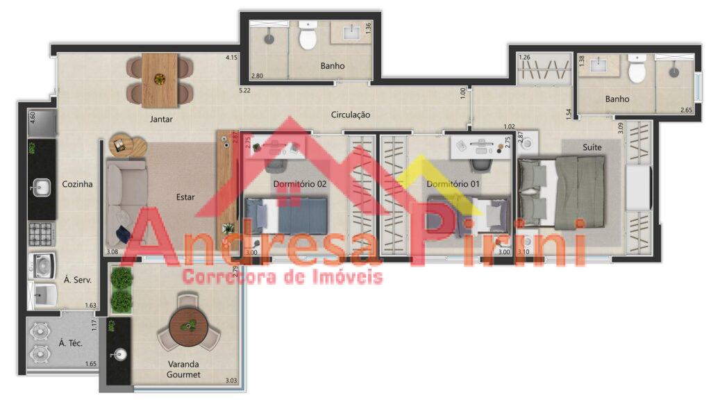 - Dormitórios: 3