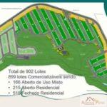 Lotes : Residencial aberto 215 unidades, residencial fechado 518 unidades e comerciais mistos 166 unidades